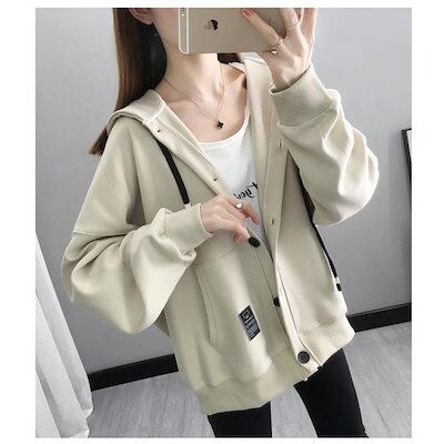 パーカー レディース フード付き 秋冬トップス 体型カバー 前開き ボタン ルームウェア ウォーキング 長袖 カジュアル 韓国風 スウェット 着痩せ
