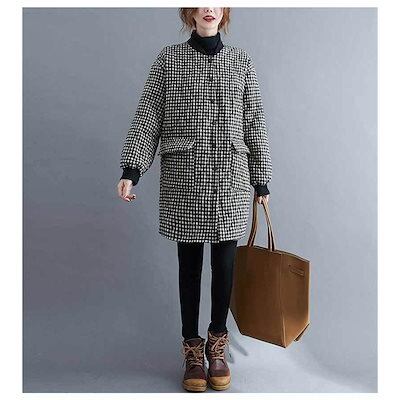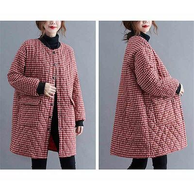 新入庫 キルティングコート ロングコート チェック柄 レディース ロング 軽量 カーディガン ノーカラー ボタン留め コーデ ポケット有り 秋冬 ゆったり カジュアル