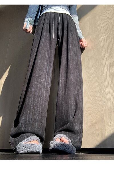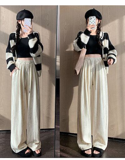 ワイドパンツ レディース ストレートパンツ ストライプ ロングパンツ 春秋 タックパンツ ロング丈 ワイド パンツ ウエストゴム ズボン ハイウエスト 体型カバー ゆったり カジュアル きれいめ 着痩