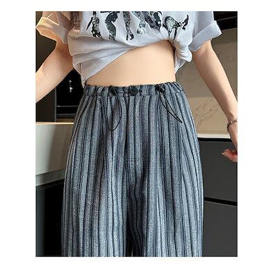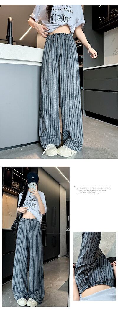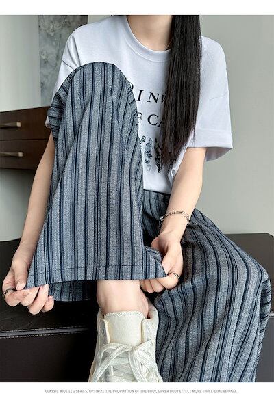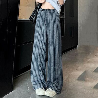 ワイドパンツ レディース ストライプパンツ ロングパンツ ストライプ ズボン 春秋 ストレートパンツ ロング丈 ワイド パンツ 体型カバー ゆったり カジュアル きれいめ 着痩せ ゆる 可愛い 秋 春
