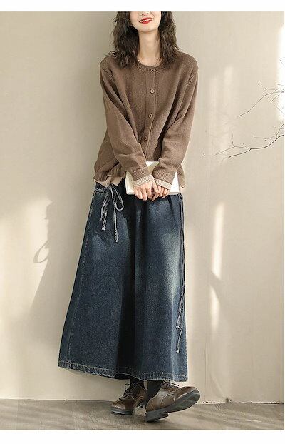 デニムスカート レディース ロングスカート ボトムス デニム スカート きれいめ 無地 美脚 ウェストゴム カジュアル おしゃれ 体型カバー ミセス ゆったり 大きいサイズ おしゃれ 大人 かわいい