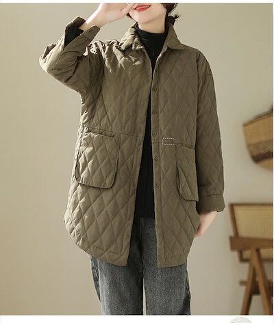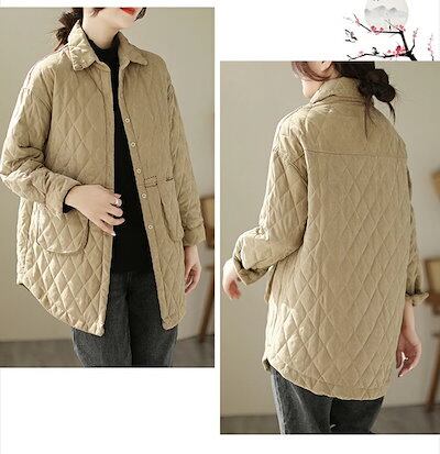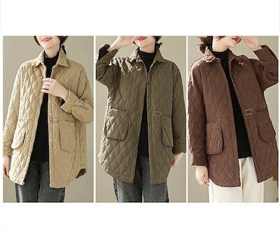 キルティングジャケット レディース 秋冬 ミモレ丈 中綿 中綿コート 長袖 前開き ジャケット アウター 羽織り 大きいサイズ カジュアル風 あったか 暖かい 防寒 軽い ゆったり ふんわり きれいめ