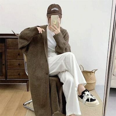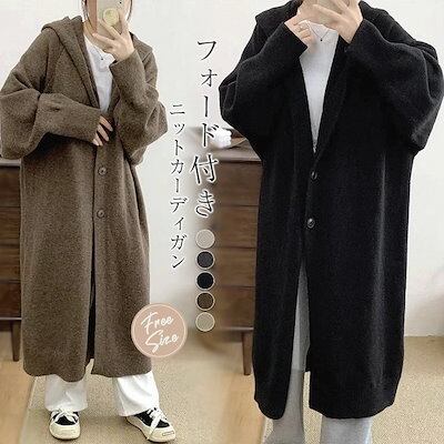 ニットロングカーディガン フード付き レディース 春秋 ニットカーディガン ロングコート アウター 大きいサイズ ゆったり 前開き カーディガン トップス ゆるカーデ 羽織 もこもこ 暖か 厚手 ロ