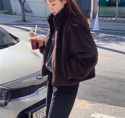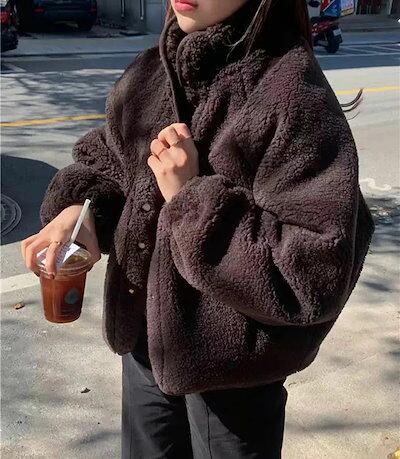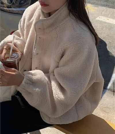ブルゾン レディース ボアブルゾン 立ち襟 ジャンバー ボアアウター ジャケット ボア フリース 無地 ぽわん袖 ボアコート トップス もこもこ 暖か 体型カバー カジュアル シンプル きれいめ おし