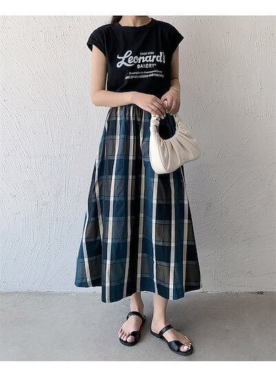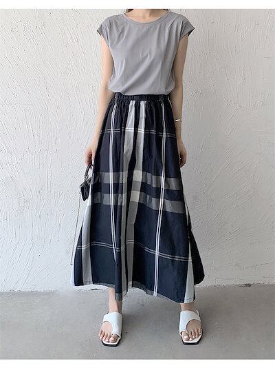スカート チェック柄 フレアスカート レディース ボトムス ロング マキシスカート チェックスカート 大きいサイズ ハイウエスト Aライン お洒落 ゆったり カジュアル 大人可愛い ブラック 黒 ベー