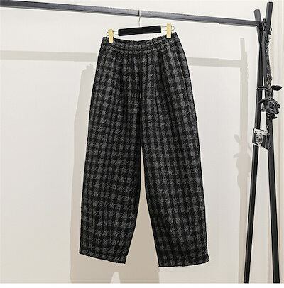 バルーンパンツ 秋冬 パンツ レディース チェック ワイドパンツ ゆったり 厚手 パンツ ウエストゴム 美脚 リラックス 防寒 パンツ 暖い カジュアル ボトムス 体型カバー バギーパンツ イージーパ
