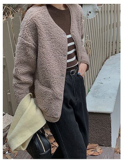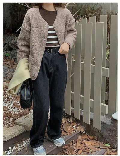 ブルゾン レディース ボアブルゾン ジャンバー ボアアウター ボア ジャケット ノーカラー 無地 ポケット付き ボアコート トップス もこもこ 暖か 体型カバー あったか カジュアル きれいめ 防寒