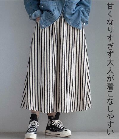 スカート ストライプ レディース フレアスカート 秋 ロングスカート 綿麻風スカート ストライプスカート ロング丈 大きいサイズ 体型カバー ゆったり カジュアル きれいめ 薄手 着痩せ ゆる 可愛い