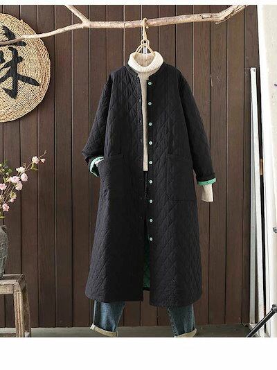 キルティングコート レディース ロングコート ロングアウター アウター 中綿 コート ミドル丈 キルト ノーカラー 大きいサイズ ライトアウター ミセスファッション 羽織り アウター ロング 軽い 大