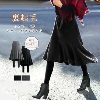 スカート付きレギンス レディース 冬 スカッツ レディース ボトム 裏起毛 スカート 大きいサイズ 体型カバー ストレッチ レギンス スカート レイヤード風 重ね着風 きれいめ おしゃれ カジュアル