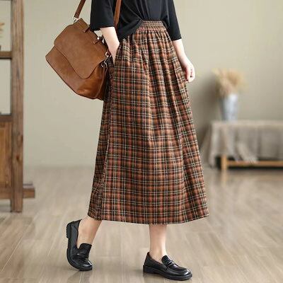 スカート チェック柄 レディース 秋冬 フレアスカート ロングスカート ウエストゴム チェックスカート ロング丈 大きいサイズ フレア フレアスカート 体型カバー ゆったり カジュアル きれいめ