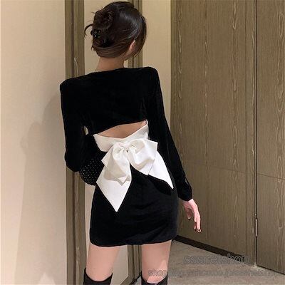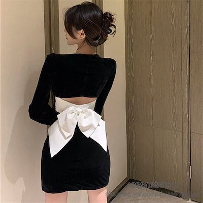 タイトワンピース 長袖 ミニ丈 レトロ風 スクエアネック ハイウエスト スキニー スリット セクシー 美脚 気質 フェミニン 夏物 パーティーsssnetshop