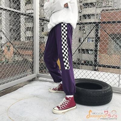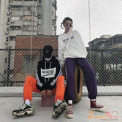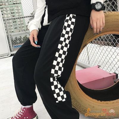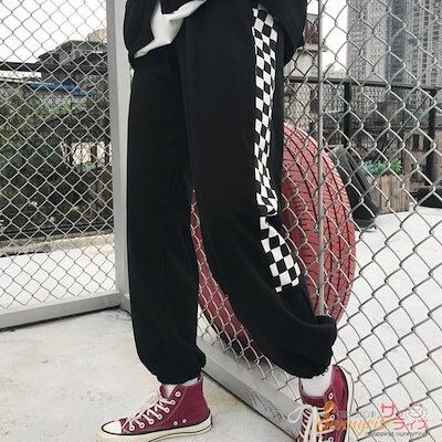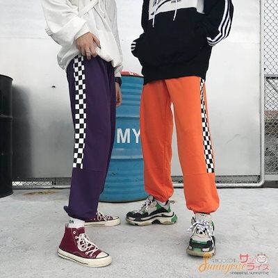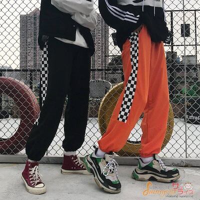 レディース ダンス 衣装 ヒップホップ HIPHOP 無地チェック 切り替え パンツ 原宿系 奇抜