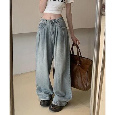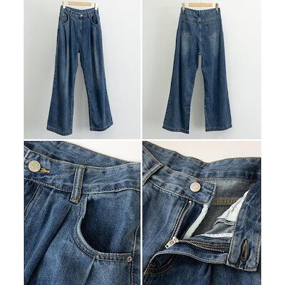 デニムパンツ レディース ジーンズタックワイドデニムパンツレディース韓国風
