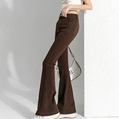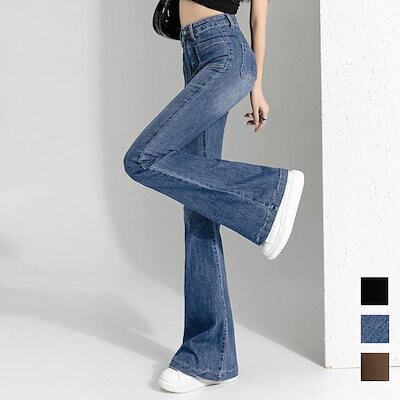 デニムパンツ レディース ジーンズ フレアデニムパンツ セミフレアパンツ韓国デニムパンツ