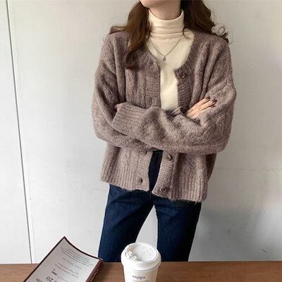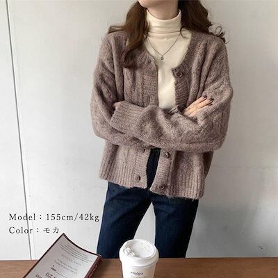 ニットカーディガンレディースアウター ニットカーディガン 秋冬 リブニット