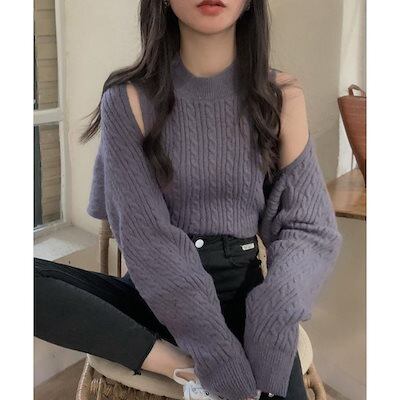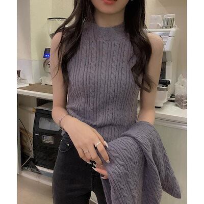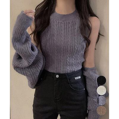 ニットカーディガン タンクトップ セット ニットカーディガン 秋冬 リブニット