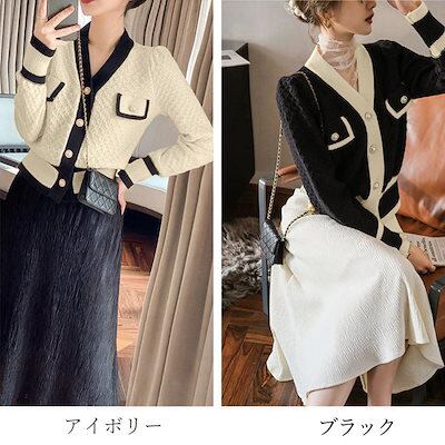 ニットカーディガン 配色 レディース ニットカーディガン 秋冬 リブニット