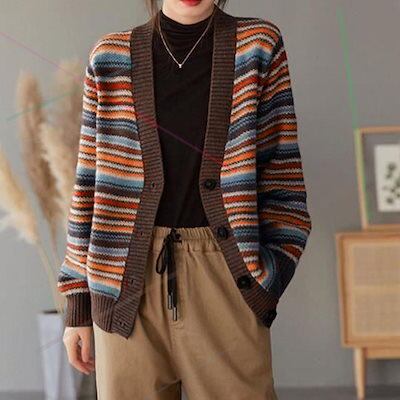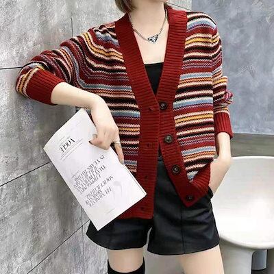 ニットカーディガンレディース韓国トップス ニットカーディガン 秋冬 リブニット