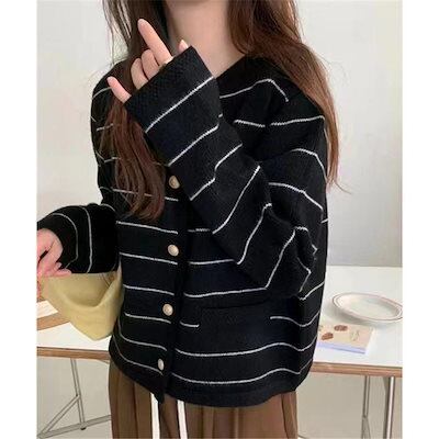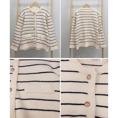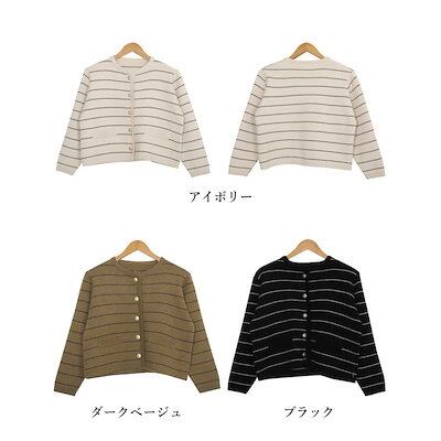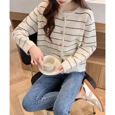 細ボーダーニットカーディガン レディース ニットカーディガン 秋冬 リブニット