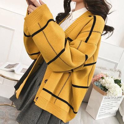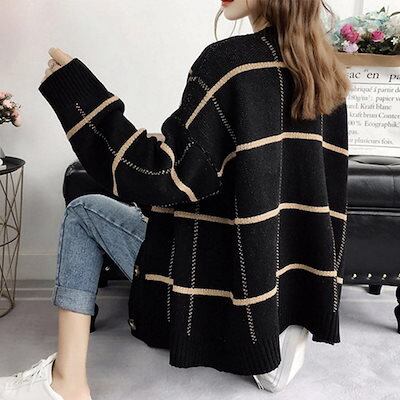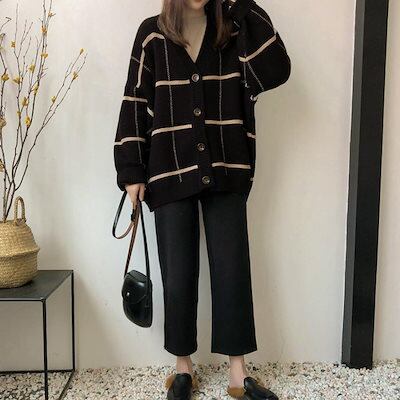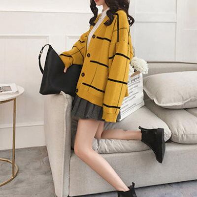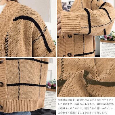 ニットカーディガン BIGチェック柄秋冬 ニットカーディガン 秋冬 リブニット
