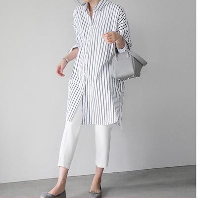 可愛い 2024新作 怠惰な風 オフィス ブラウス ホワイト/ストライプ柄 セミロング シャツ女 ゆったりブラウス トップス ワイシャツ 韓国ファッション レディース服 紫外線対策 ロンt