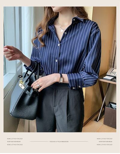 2024新作 シンプル レトロ 条? シャツ女 ブラウス 可愛い トップス ワイシャツ 気質 お肌に優しい 韓国ファッション 福袋 レディース 服 紫外線対策 ロンt シフォンブラウス