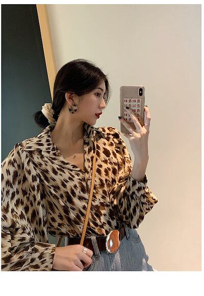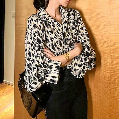 2024新作 豹柄 シンプル レトロプリント 長袖インナーアウター ブラウス可愛い トップス お肌に優しい ブラウス 韓国ファッション レディース 服 紫外線対策 ロンt シフォンブラウス
