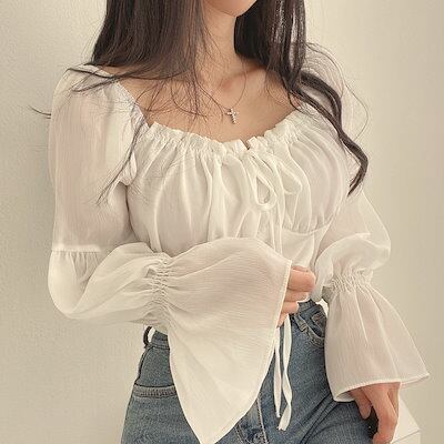 2024新作 ゆったりレトロプリント 木耳縁 韓国ファッション 長袖インナーアウターブラウス可愛い トップス お肌に優しい ブラウス レディース 服 紫外線対策 ロンt シフォンブラウス