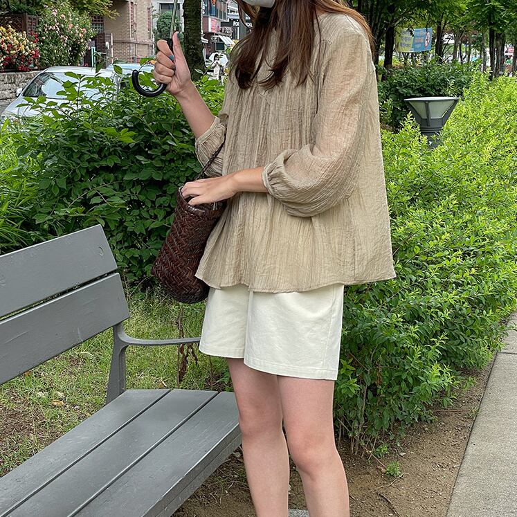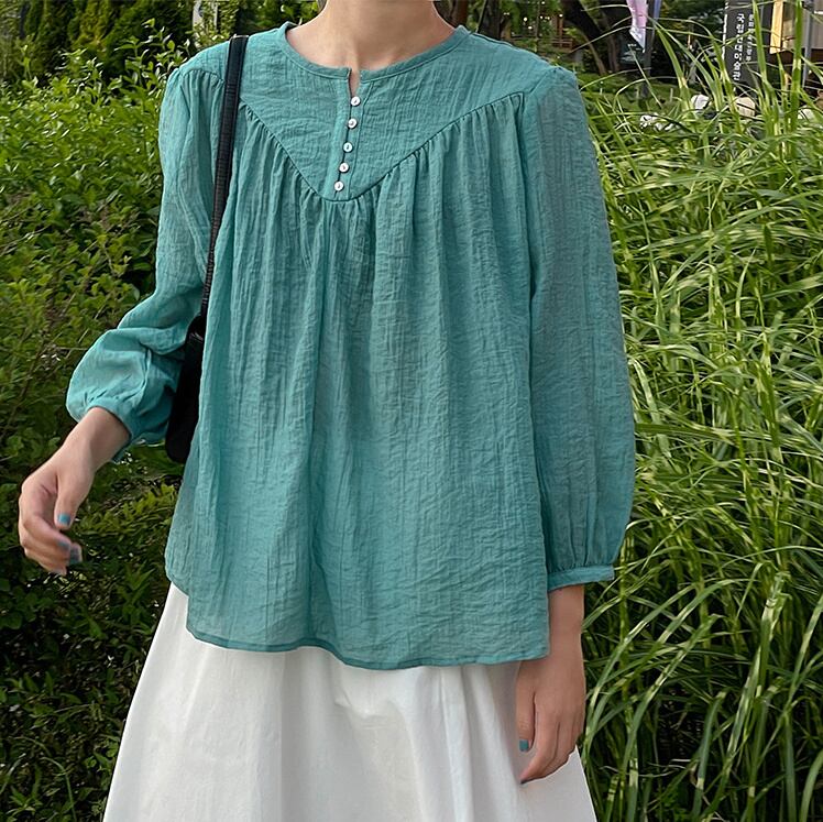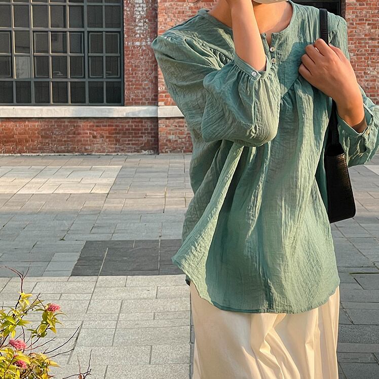 高レビュー 夏 ラウンドネック しわ加工 シャツ 上着 日焼け止め トップス レディース 韓国ファッション