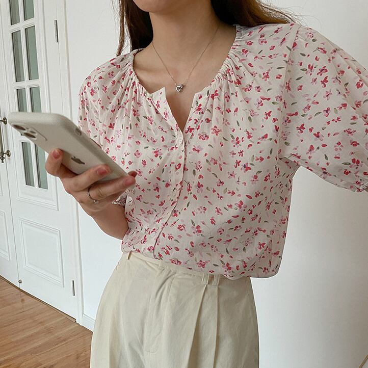 Vネック シャツ 夏新作 シングルブレスト ゆったり 上着 トップス レディース 韓国ファッション