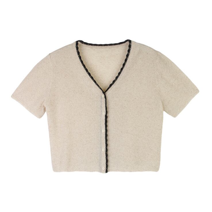 Newデザイン 亜麻 日焼け止め シャツ 夏 半袖 Vネック 上着 トップス レディース 韓国ファッション