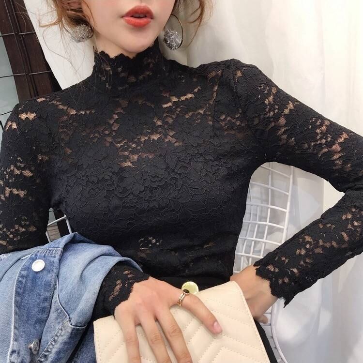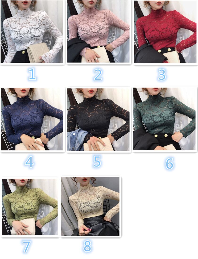 秋冬新作 長袖レースTシャツ レディース ハイネック インナー 無地トップス