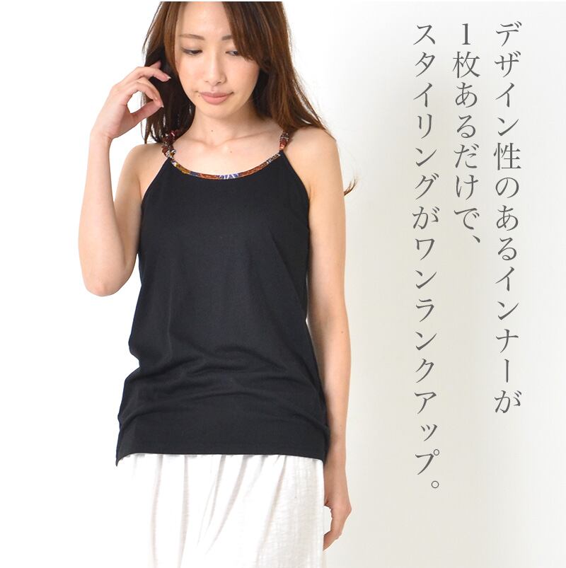 キャミソール F レディース トップス インナー 肩ヒモシャーリング 綿混 無地 大人カジュアル おうちコーデ