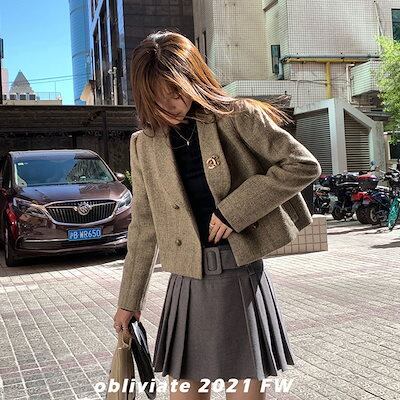 韓国ファッション 2024新作 運動セット涼しく楽ちんセットセットアップ レディース 秋冬スウェット上下セット版スーツハイウエスト開脚半身スカートヘリンボーンウールラシャショートジャケットセット福