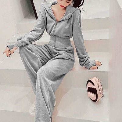 韓国ファッション 2024新作 運動セット涼しく楽ちんセットパーカー 秋冬のスポーツウェアの高見えコーデスーツファスナーキャップ付き薄手タイプのランニングウェア2着 裏起毛ファッション福袋