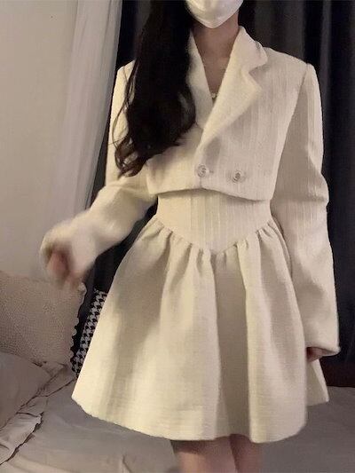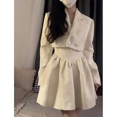 パーティードレス 秋 スーツ2点セット秋 プリンセス長袖ミニスーツコート+胸拭きワンピース