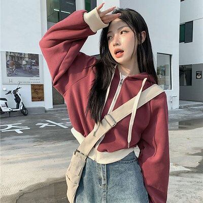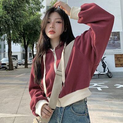 パーカー 韓国ファッション フードコート秋のトレンドカジュアル新型ショート丈長袖トップス