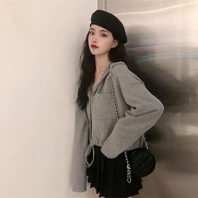 パーカー ハットパーカー秋 新作ゆったりショート丈デザイン感のあるカーディガンジャケット