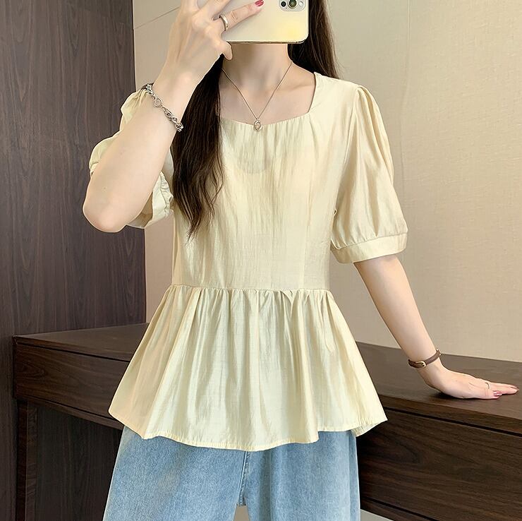 【大きいサイズL-4XL】【春夏新作】ファッショントップス♪ブラック/アンズ2色展開◆