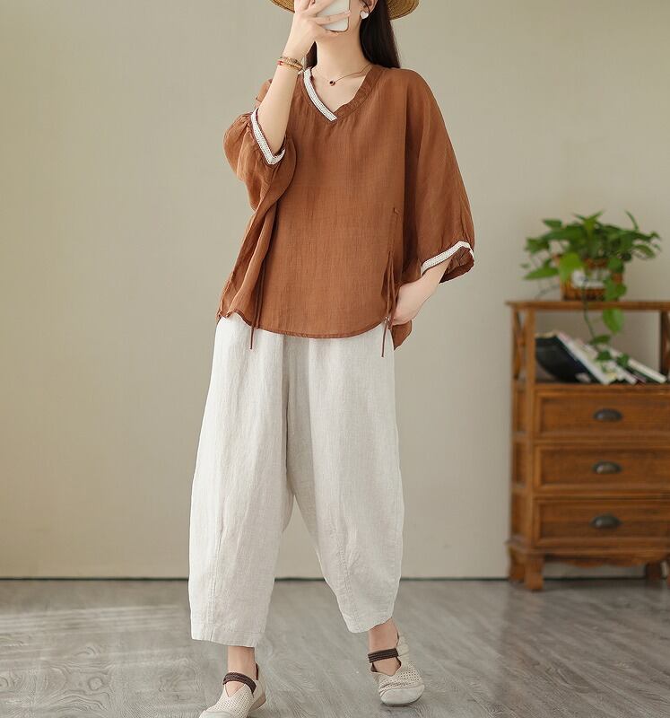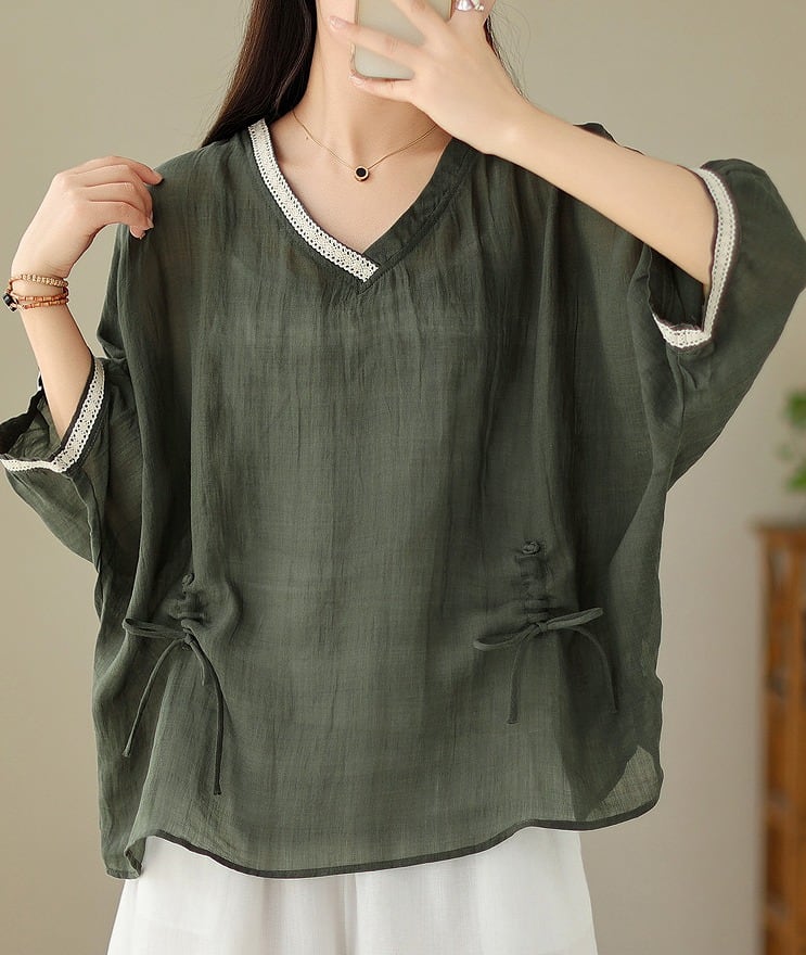 【春夏新作】ファッショントップス♪アカ/グリーン2色展開◆
