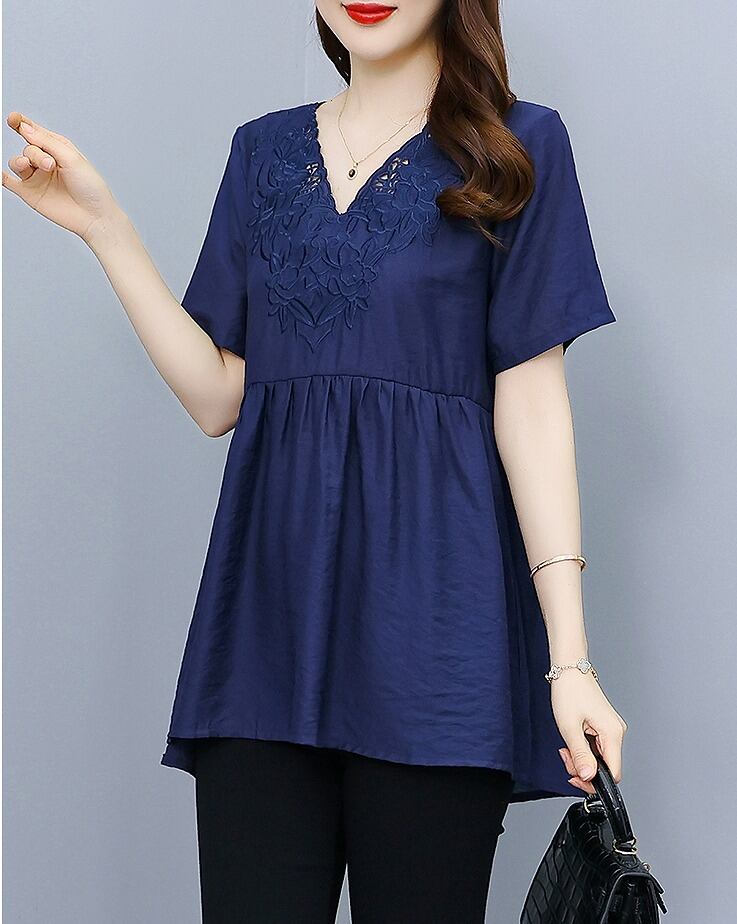 【大きいサイズL-5XL】【春夏新作】ファッショントップス♪ブルー/カーキ2色展開◆