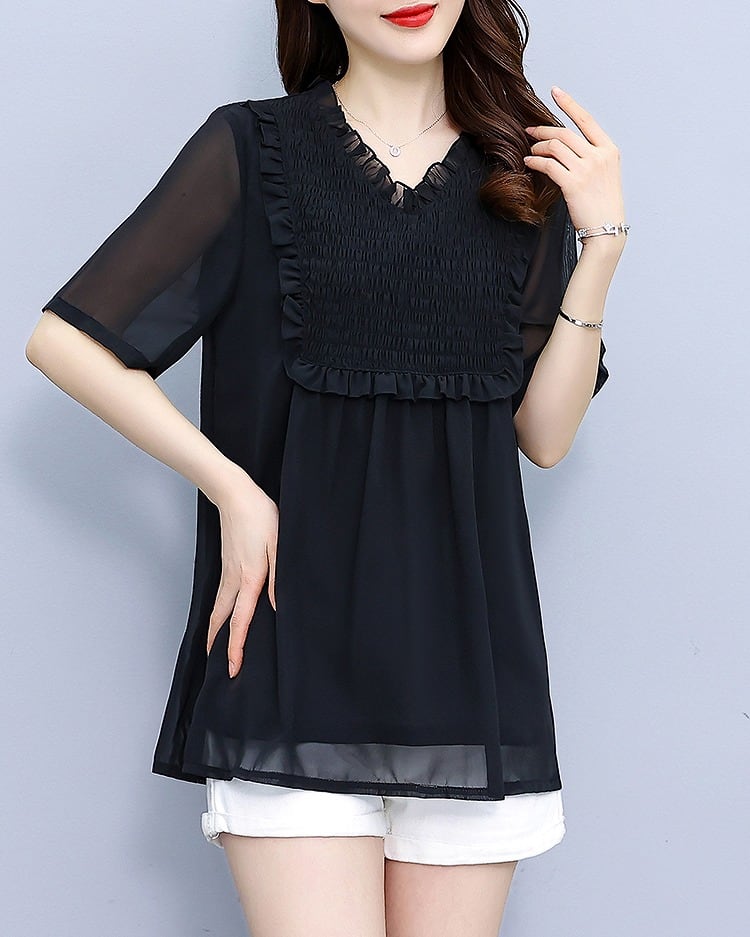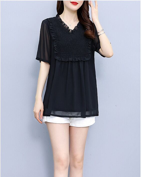 【大きいサイズL-5XL】【春夏新作】ファッショントップス♪ダークブルー/ブラック2色展開◆