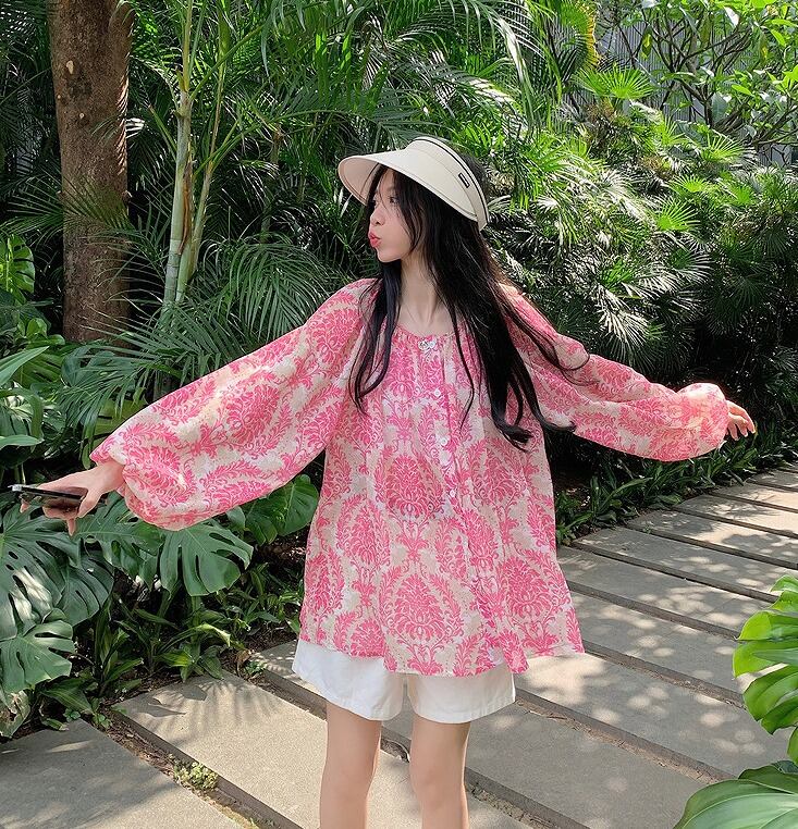 【大きいサイズL-4XL】【春夏新作】ファッショントップス♪アカ/グリーン2色展開◆