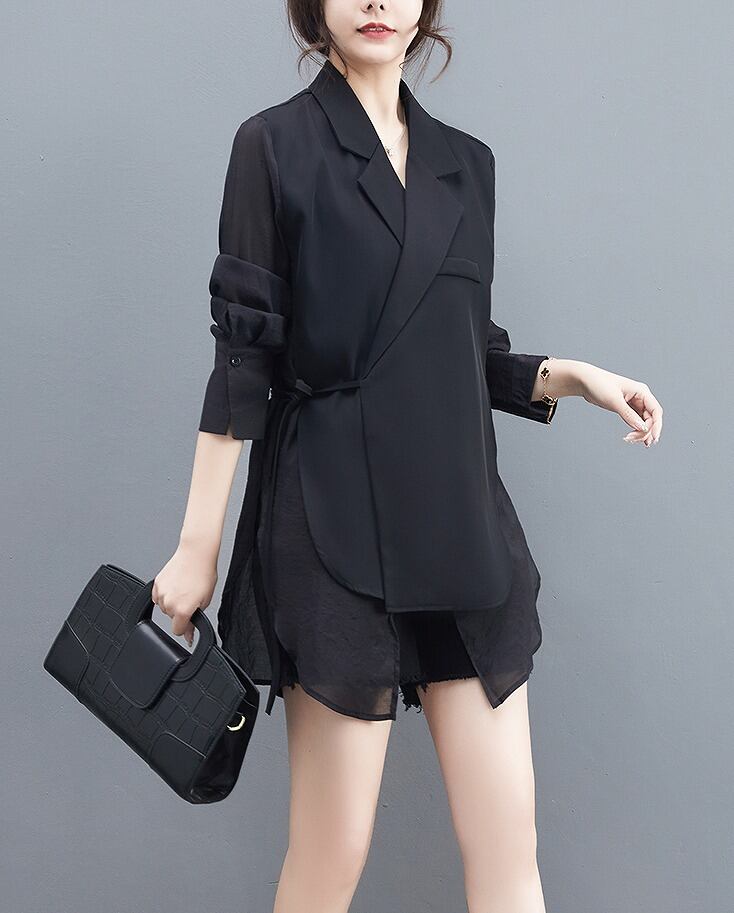 【春夏新作】日焼け防止シャツファッショントップス♪ブラック/ホワイト2色展開◆