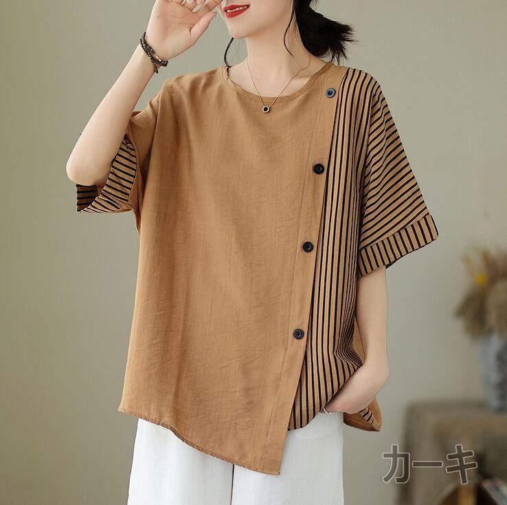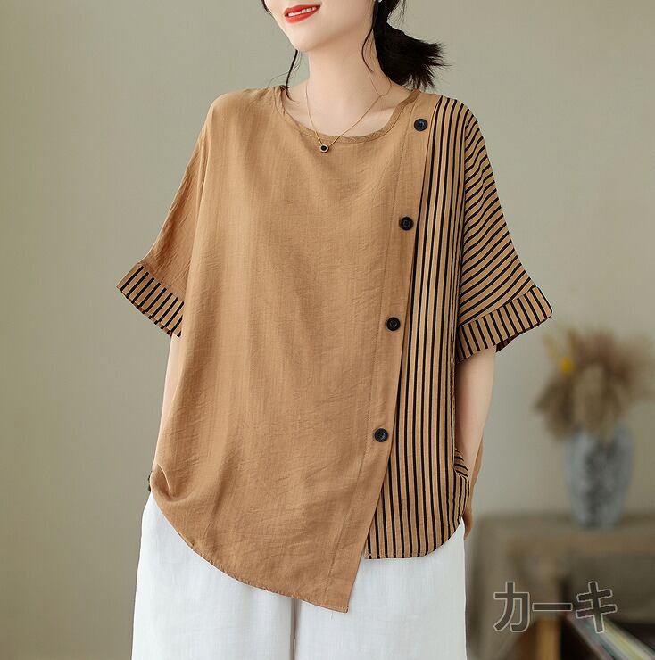 【春夏新作】ファッショントップス♪カーキ/ブルー/グリーン3色展開◆