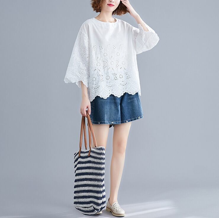 【春夏新作】ファッショントップス♪ホワイト/ブルー2色展開◆