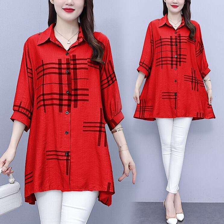 【大きいサイズL-5XL】【春夏新作】ファッショントップス♪カーキ/アカ2色展開◆