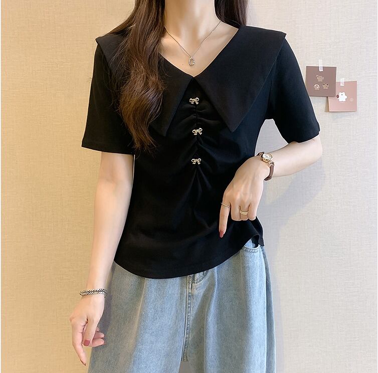 【大きいサイズL-4XL】【春夏新作】ファッショントップス♪ブラック/パープル2色展開◆