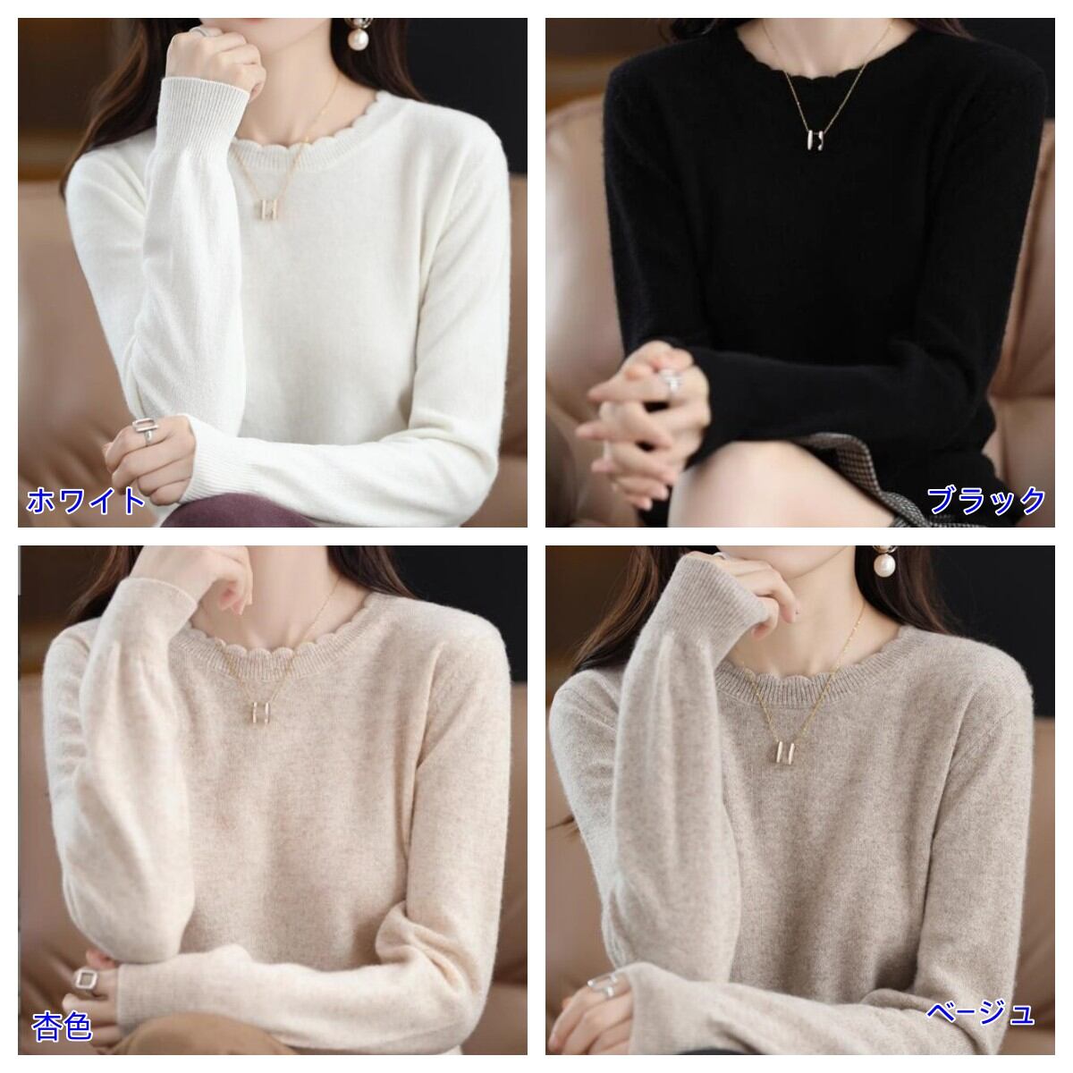 2024年INS レディース気質 毛系 トップス レディーススリム インナーニットセーター4色